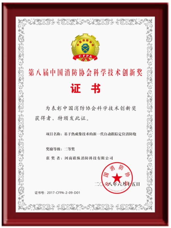河南聯(lián)縱消防科技有限公司位于鄭州市高新區(qū)電子電器產(chǎn)業(yè)園,擁有專家團隊和標(biāo)準(zhǔn)化工業(yè)廠房和實驗場,是一家以大空間智能消防水炮為主導(dǎo)的集科研、開發(fā)、生產(chǎn)、銷售、服務(wù)于一體的高科技消防設(shè)備制造企業(yè)。 公司以“極致產(chǎn)品安天下”為宗旨,針對市場上普通消防水炮精準(zhǔn)度差、易誤噴、不能實時追蹤動態(tài)火源、適用場所受限等缺陷,歷時6年,成功研發(fā)出了第II代自動跟蹤定位射流滅火裝置系列產(chǎn)品。公司已通過了IS09001:208、IS014001:2004、OHSAS18001:2007、GB/T29490-2013等體系認證,獲得專利授權(quán)三十多項,取得國家級高新技術(shù)企業(yè)、消防行業(yè)誠信示范單位、消防科技創(chuàng)新企業(yè)、第八屆中國消防協(xié)會科學(xué)技術(shù)創(chuàng)新獎,產(chǎn)品通過國家消防裝備質(zhì)量監(jiān)督檢驗中心檢驗,并獲得了公安部消防產(chǎn)品合格評定中心頒發(fā)的消防產(chǎn)品認證證書。 第II代自動跟蹤定位射流滅火裝置采用熱成像+捷聯(lián)制導(dǎo)技術(shù),集自動報警、動火追蹤、自動滅火、視頻監(jiān)控四位一體,具有可靠性高、精準(zhǔn)度好、性能穩(wěn)定、安裝操作方便、智能化程度高、應(yīng)用環(huán)境廣泛等特點。公司產(chǎn)品自上市以來,已經(jīng)有數(shù)萬臺產(chǎn)品被安裝在了數(shù)千個工程項目中,先后參加了幾十次國內(nèi)外消防展,贏得了各界人士的一直好評,被央視《我愛發(fā)明》欄目發(fā)現(xiàn)后,央視編導(dǎo)組對產(chǎn)品性能進行了數(shù)十天的實驗和拍攝,先后在以下節(jié)目播出: CCTV-10《我愛發(fā)明》之“烈火哨兵”、CCTV-10《實驗現(xiàn)場》之“滅火試驗”、CCTV發(fā)現(xiàn)之旅《品質(zhì)》之“智慧消防 守護一生”、 CCTV-17新改版《我愛發(fā)明》之“智能水炮”...